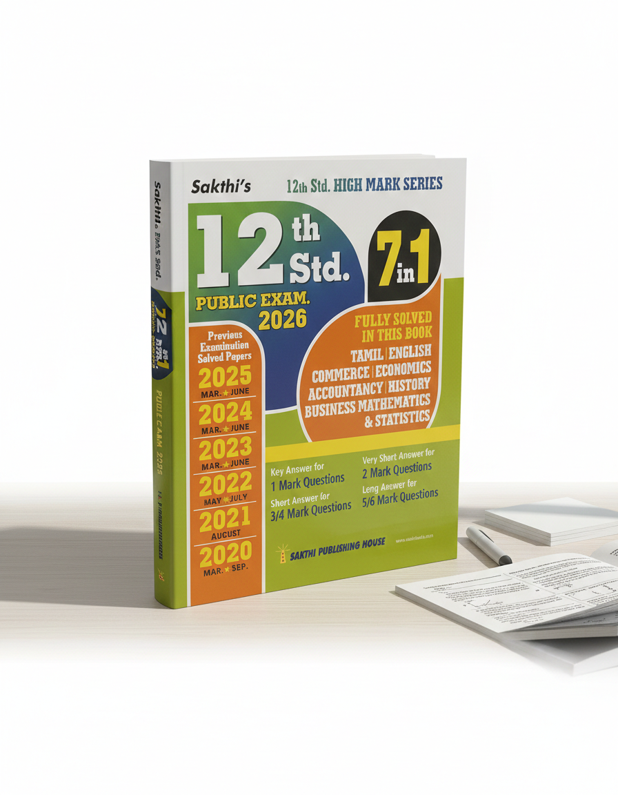 Sakthi’s 12th Standard Public Exam 2026 | 7 in 1 Fully Solved Question Papers (Tamil English Medium)