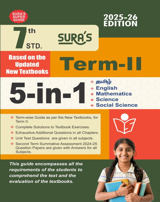 SURA's 7th Standard Guide 5in1 Term II English Medium 2025-26 Edition offers comprehensive coverage of all key subjects for the academic term. Expertly designed to support students in mastering concepts, this guide combines five essential study materials into one coherent resource, enhancing understanding and exam readiness. Crafted to align with the latest syllabus, it facilitates clear learning and efficient revision, making it an indispensable tool for academic success.